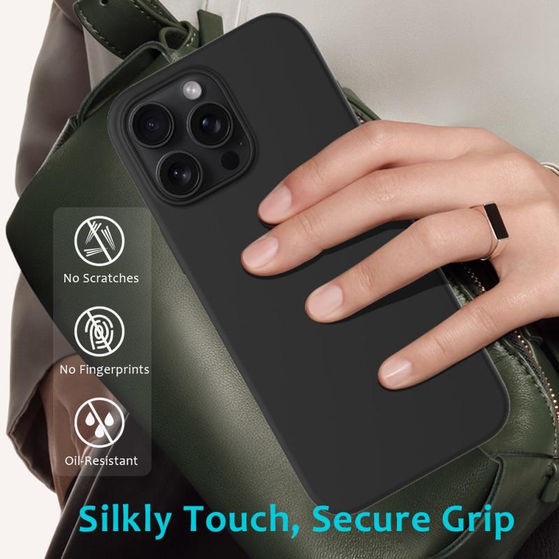 - Et robust og halv-fleksibelt flydende silikonecover til iPhone 16 Pro