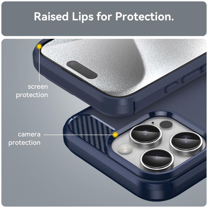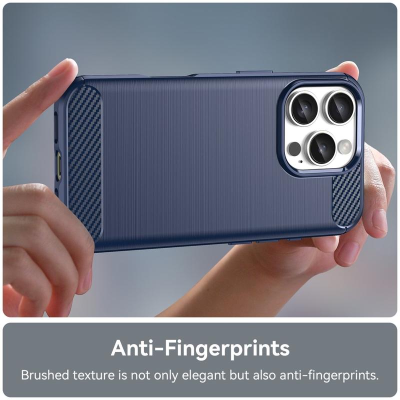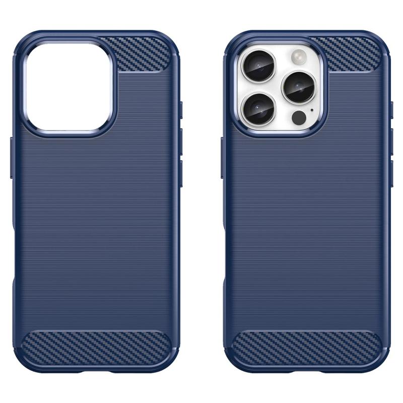 iPhone 16 Pro Max Børstet TPU Cover - Karbonfiber - Blå