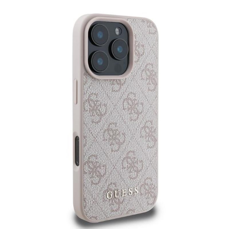 iPhone 16 Pro Max Guess Grained 4G Logo Stativkamera Cover - Pink