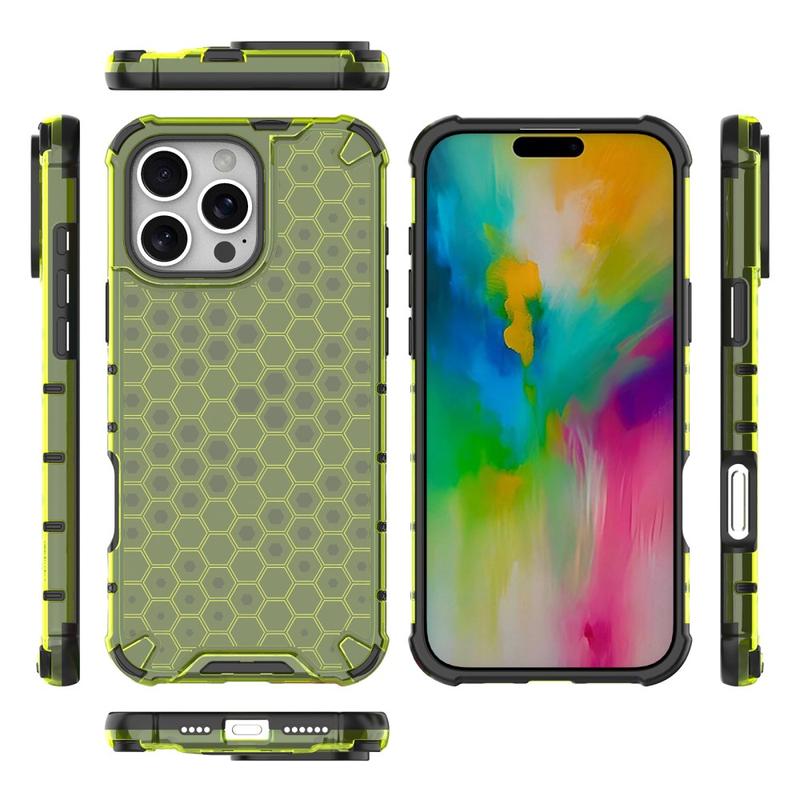 iPhone 16 Pro Max Honeycomb Armored Hybrid Cover - Grøn