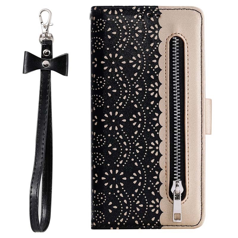 iPhone 16 Pro Max Lace Pattern Etui med Pung - Sort