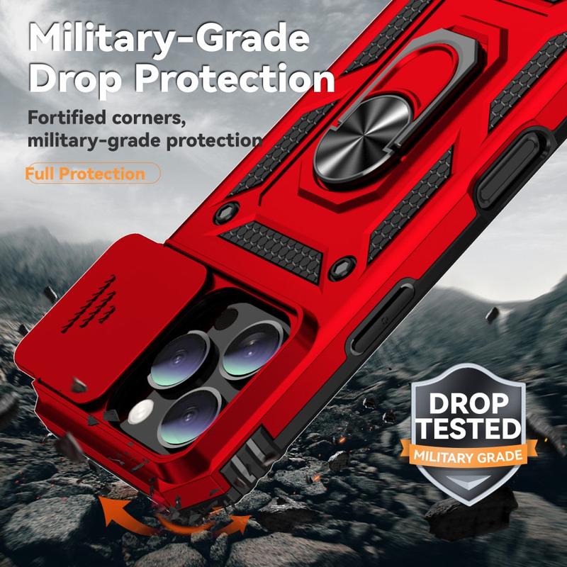 iPhone 16 Pro Max Roterende Ring Hybrid Cover med Kameraskjold - Rød