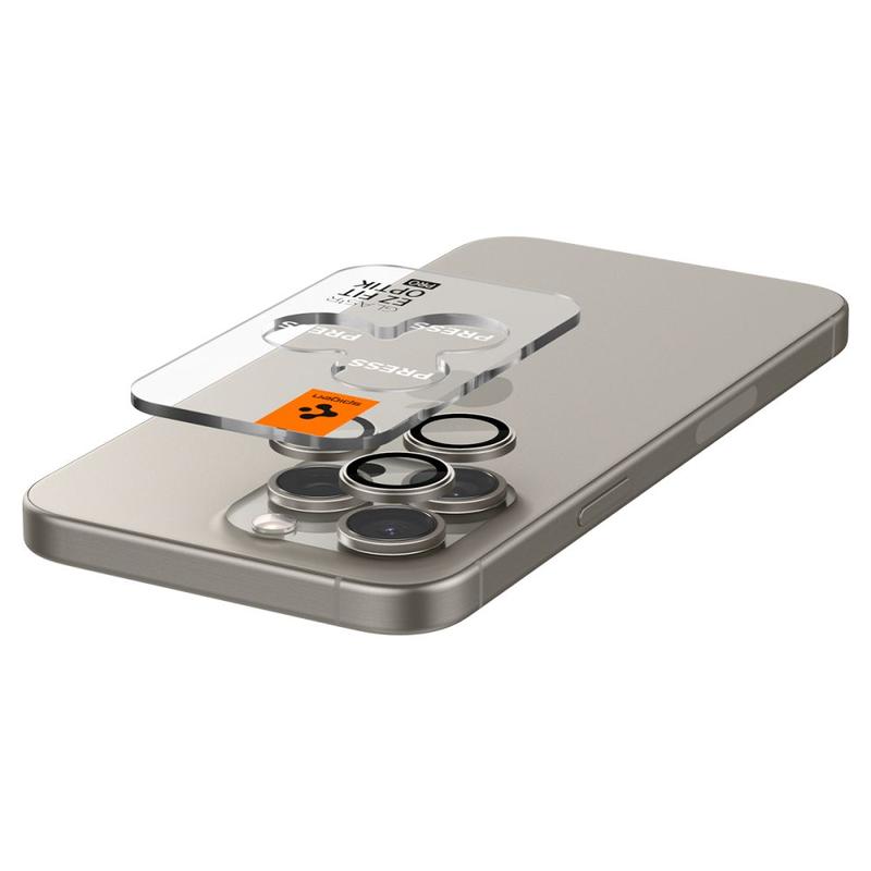 - Spigen Glas.tR Ez Fit Optik Pro linsebeskytter til iPhone 14 Pro, iPhone 14 Pro Max, iPhone 15 Pro, iPhone 15 Pro Max, iPhone 16 Pro, iPhone 16 Pro Max, iPhone 17 Pro, iPhone 17 Pro Max