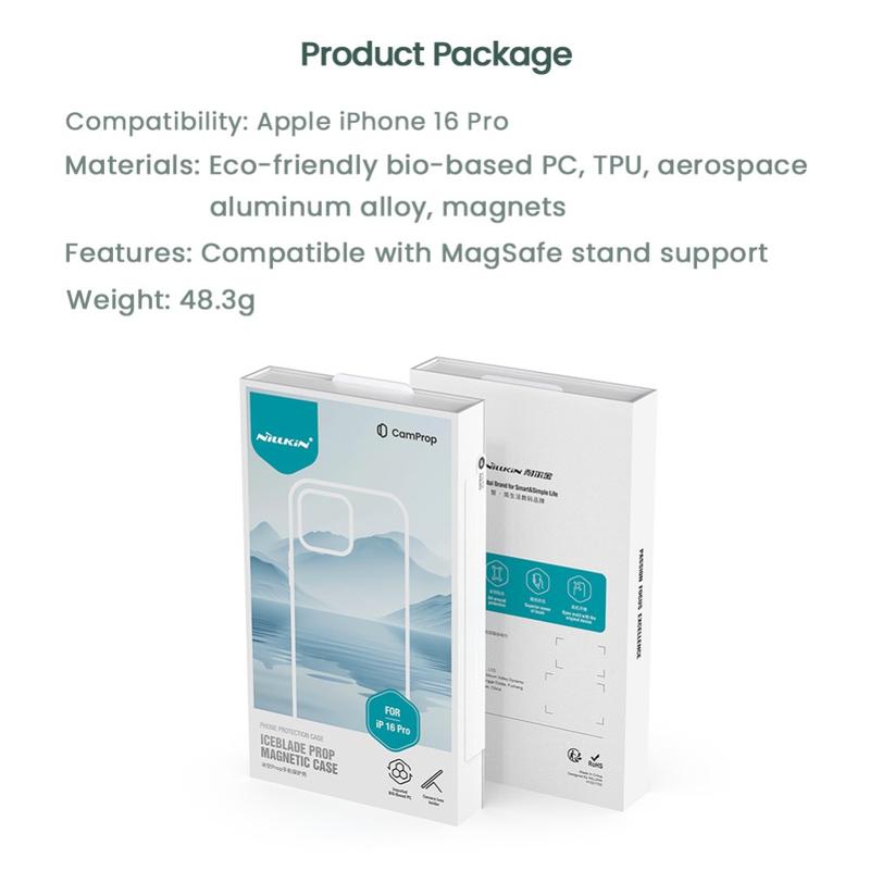 Nillkin IceBlade Prop Magnetisk Cover til iPhone 16 Pro - MagSafe-kompatibel, skydelåg til linse