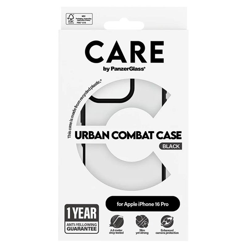 iPhone 16 Pro PanzerGlass Care Urban Combat Cover - Sort / Gennemsigtig