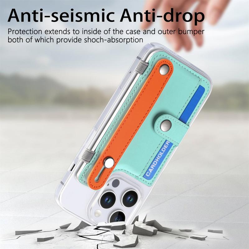 Plastetui CY1 med kortplads, armbånd og støtte til iPhone 16 Pro