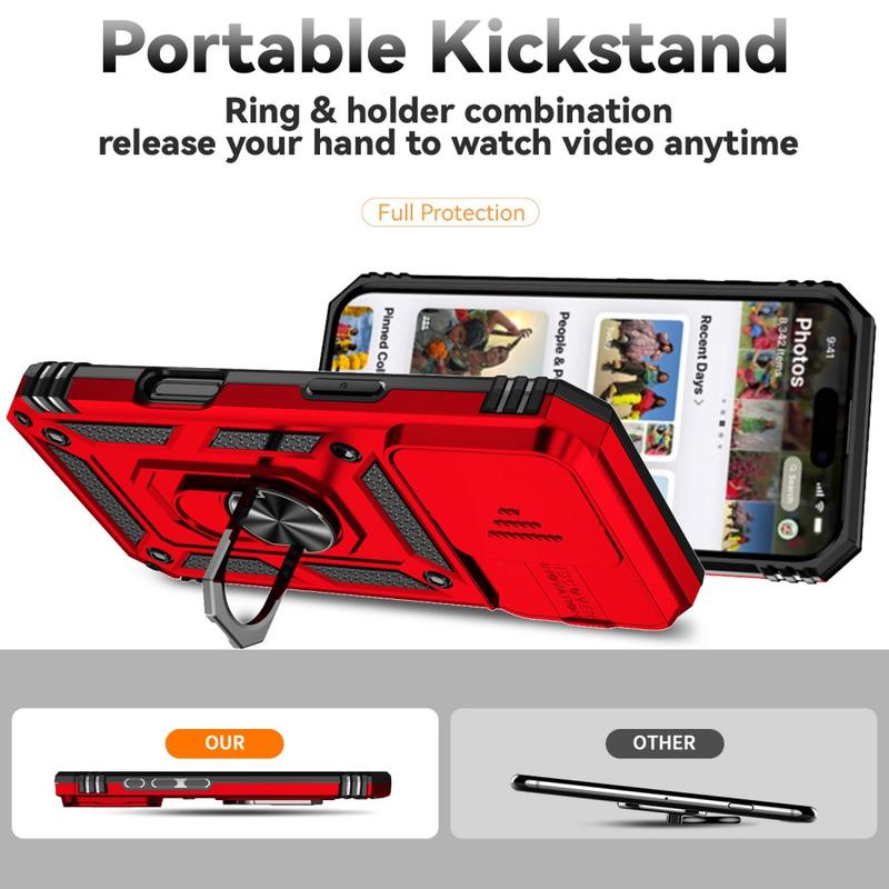 iPhone 16 Pro Roterende Ring Hybrid Cover med Kameraskjold - Rød