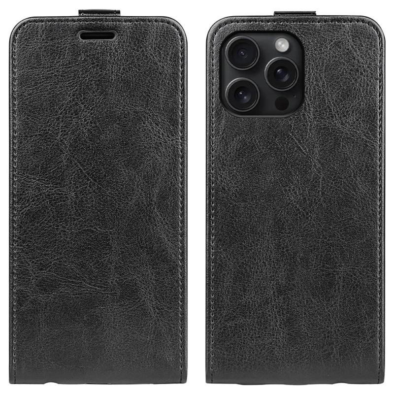 iPhone 16 Pro Vertikal Flip Taske med Kortholder - Sort
