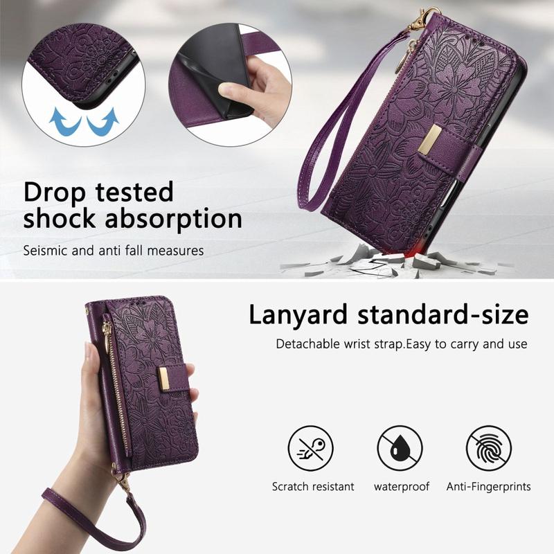 Hold styr på dine vigtigste ting, og tilføj elegance til din iPhone 16 med dette pungetui med blomstret bladmønster. Designet med flere kortpladser, en sikker lynlåslomme og en aftagelig håndledsrem er det den perfekte blanding af funktionalitet og stil. Det er fremstillet af holdbart TPU og polyuretan og giver pålidelig beskyttelse, samtidig med at det fungerer som en moderigtig alt-i-en-pung.