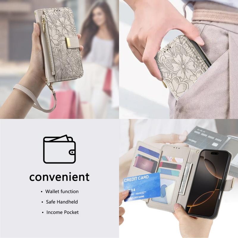 I modsætning til almindelige iPhone 16-etuier kombinerer dette alt-i-et-pungcover beskyttelse, organisering og elegance. Blomstertrykket giver det en stilfuld kant, mens lynlåslommen og håndledsremmen giver uovertruffen bekvemmelighed i hverdagen og på rejsen.