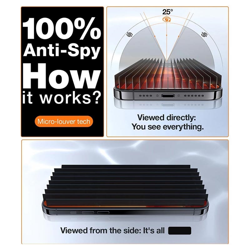- Forbedret privatliv: Anti-spionteknologi sikrer, at dit skærmindhold forbliver privat, hvilket gør det ideelt til offentlig brug eller professionelle miljøer.