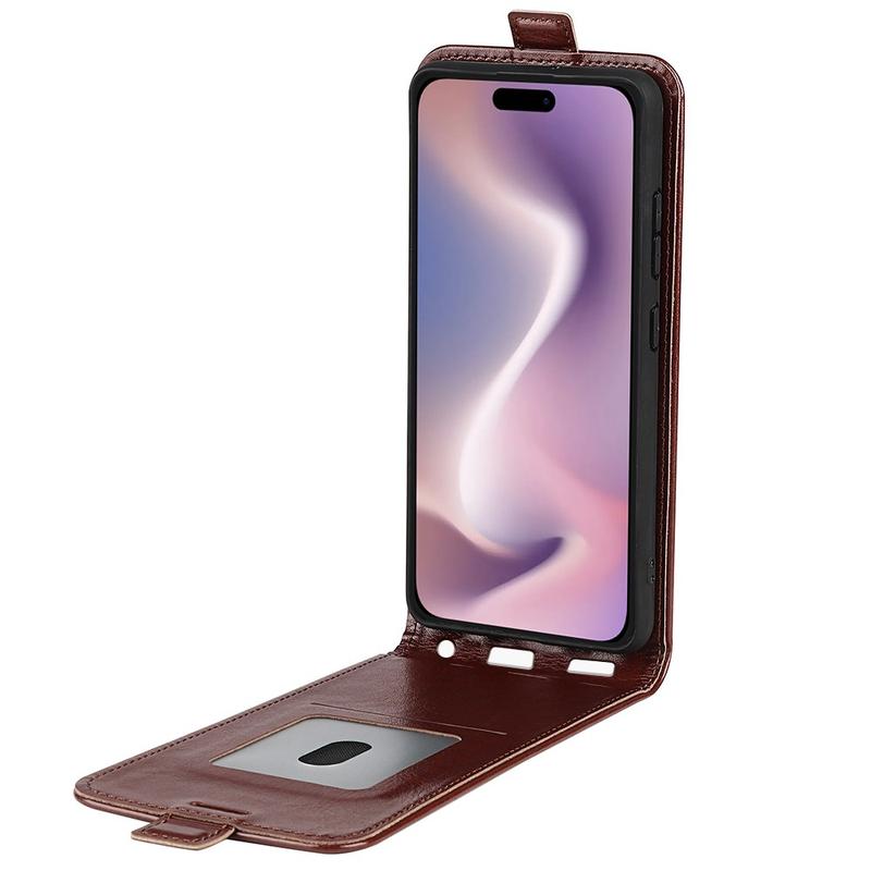 iPhone 16 Vertikal Flip Taske med Kortholder - Brun