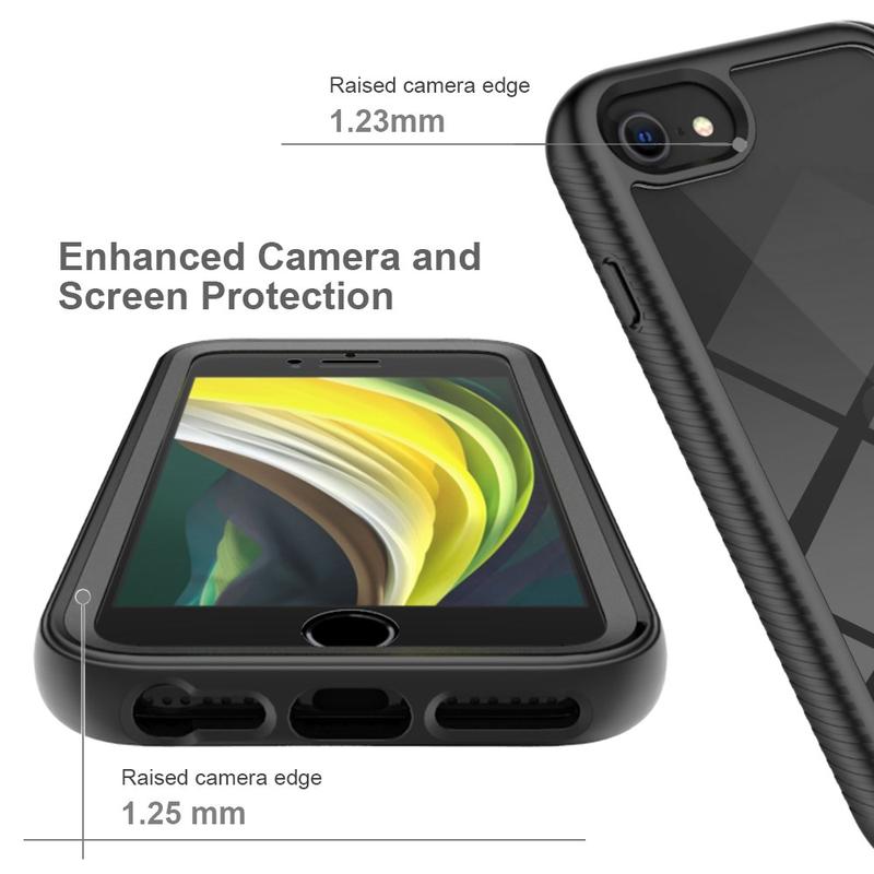 En kombination af TPU kanter og plastikbagside beskytter mod fald, stød, ridser og snavs, mens PET-skærmbeskytteren foran holder skærmen sikker. Hævede kanter omkring kameraet beskytter yderligere linserne.