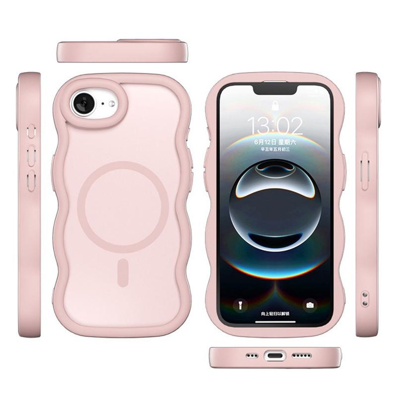 iPhone 16e Bølgekant magnetisk hybrid cover - pink
