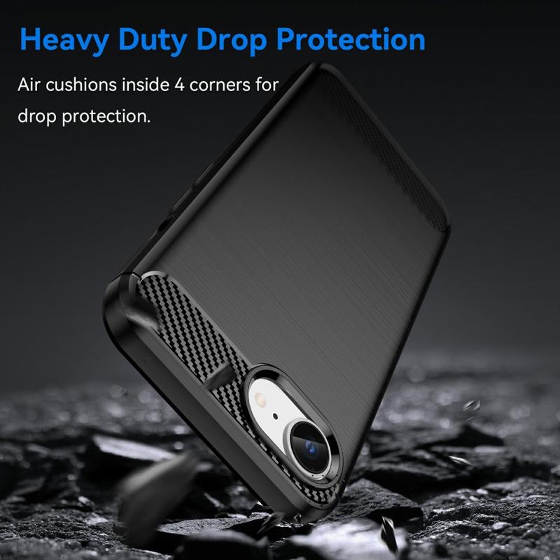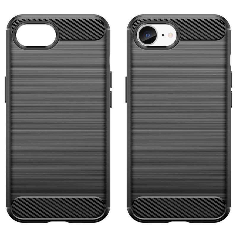 iPhone 16e Børstet TPU Cover - Karbonfiber - Sort