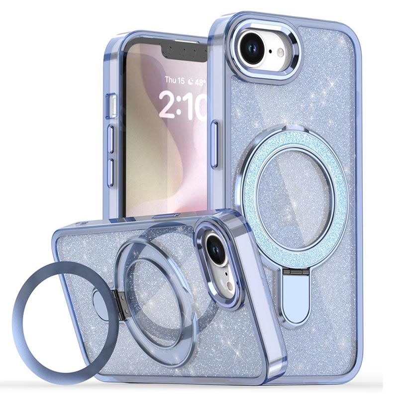 iPhone 16e Glitter Hybrid cover med kickstand - MagSafe-kompatibel - Blå