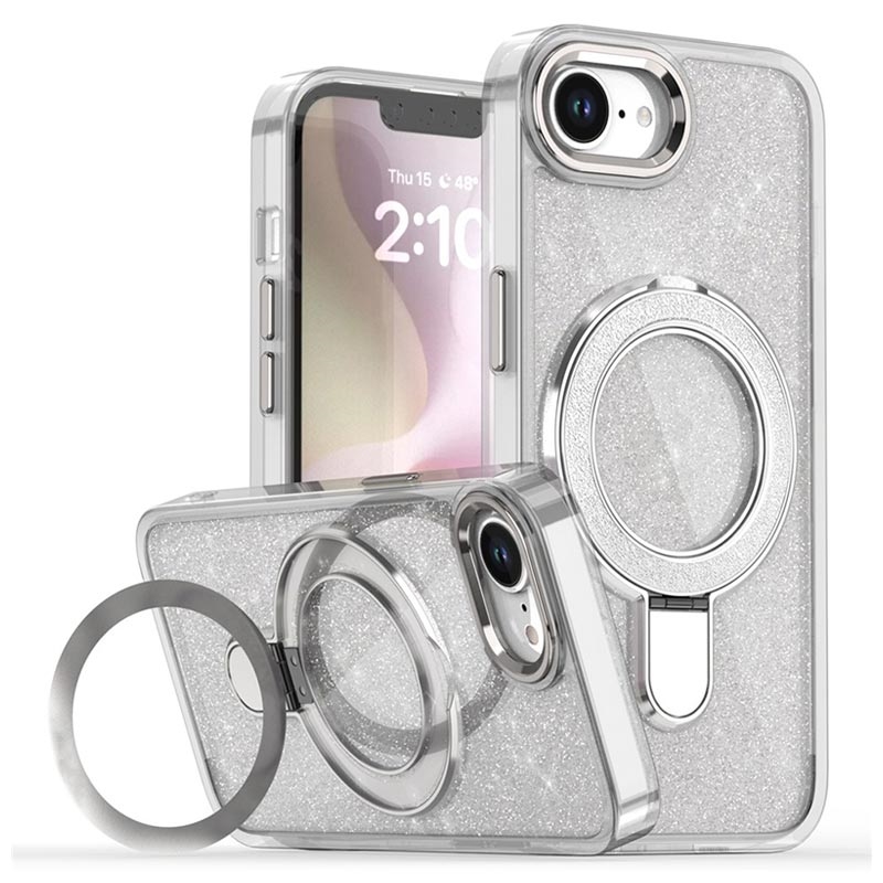 Glitter cover med kickstand til iPhone 16e - MagSafe-kompatibelt TPU + PC Hybrid Kickstand-cover