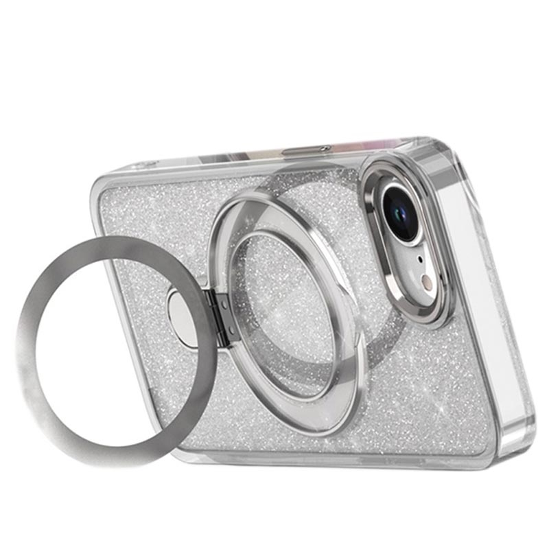 iPhone 16e Glitter Hybrid cover med kickstand - MagSafe-kompatibel - Gennemsigtig