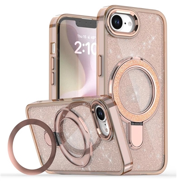 Glitter cover med kickstand til iPhone 16e - MagSafe-kompatibelt TPU + PC Hybrid Kickstand-cover
