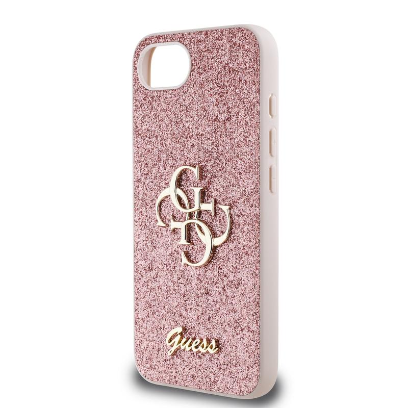 iPhone 16e Guess Fixed Glitter 4G Metal Logo Cover - Pink