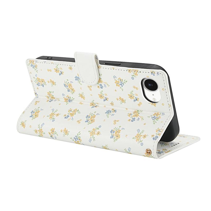 Rhombisk Blomsterpung til iPhone 16e - med rem og kortholdere