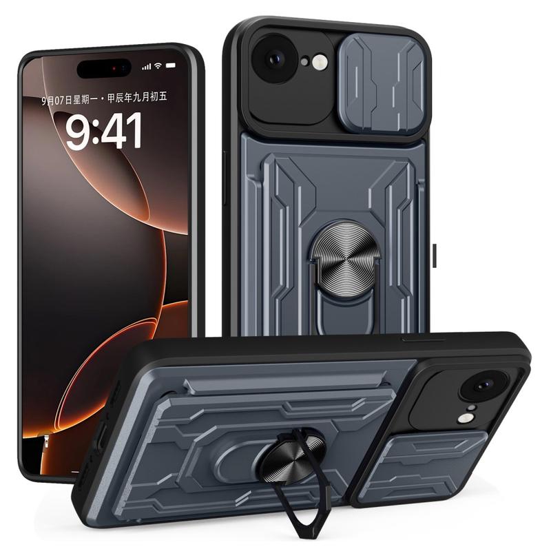 iPhone 16e Roterende Ring Hybrid Cover med Kameraskjold - Titanium grå
