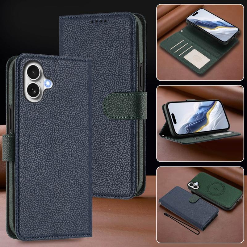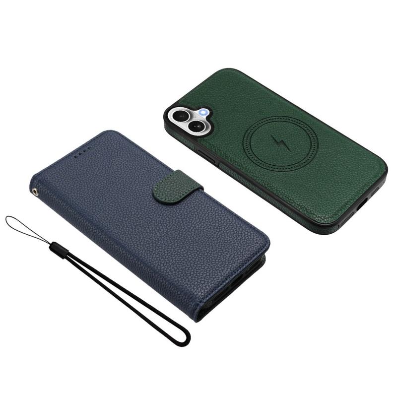 iPhone 17 Pro aftageligt pungetui med MagSafe, RFID-beskyttelse og håndrem - blå / grøn