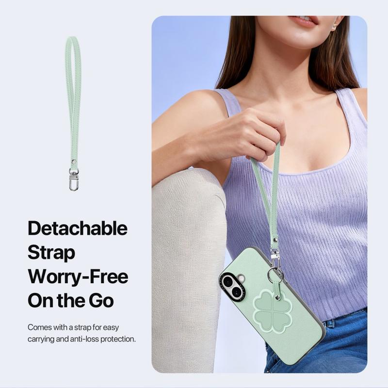 Der medfølger en aftagelig strop, som gør det nemt at bære den på rejser, på vej til arbejde eller i dagligdagen. Den giver ekstra sikkerhed mod tab, samtidig med at den giver din iPhone 17 et moderigtigt touch af tilbehør.