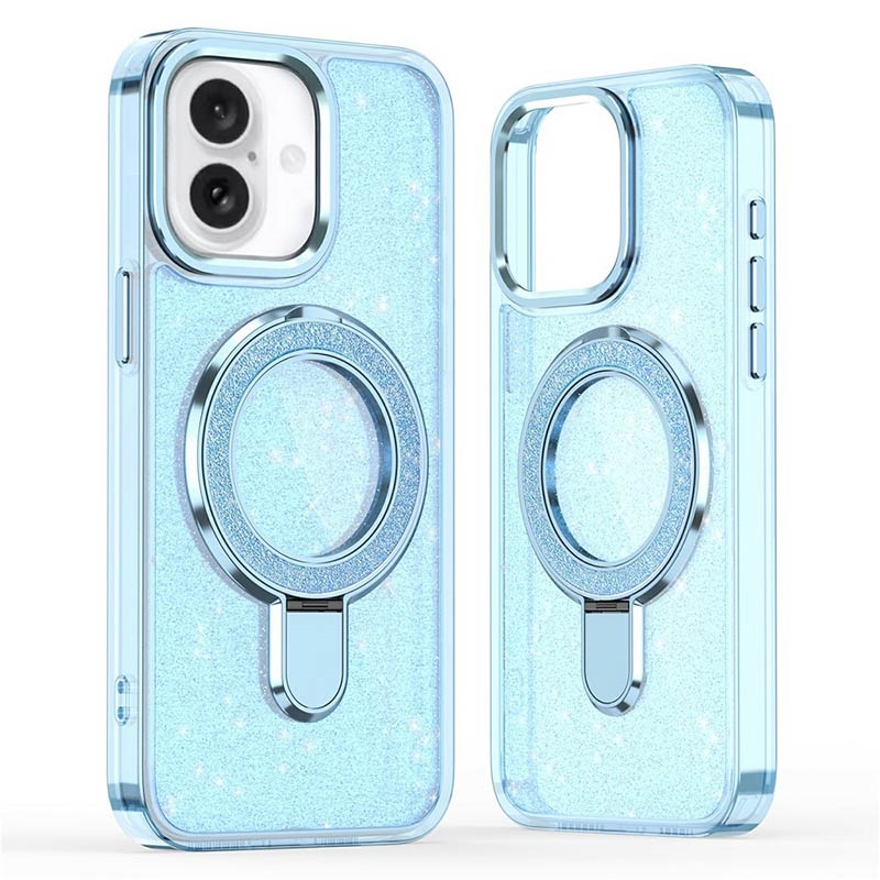 iPhone 17 Glitter Hybrid cover med kickstand - MagSafe-kompatibel - Blå