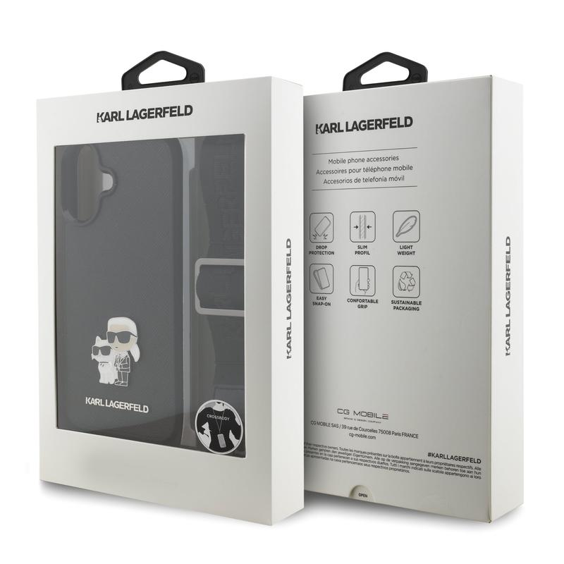 iPhone 17 Karl Lagerfeld Saffiano Crossbody Metal Karl & Choupette Cover - Sort er ikke kun et beskyttende cover, men også et modeudtryk. Det kombinerer funktionalitet og stil på en måde, der gør det til et must-have tilbehør for enhver iPhone 17 ejer. Med sin høje kvalitet og ikoniske design, vil dette cover beskytte din telefon og samtidig tilføje et strejf af luksus til din daglige rutine.