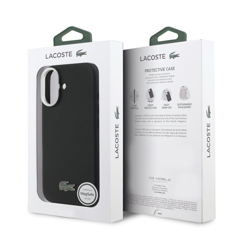 iPhone 17 Lacoste Iconic Petit Pique Metal Logo Cover - MagSafe-kompatibelt - Sort