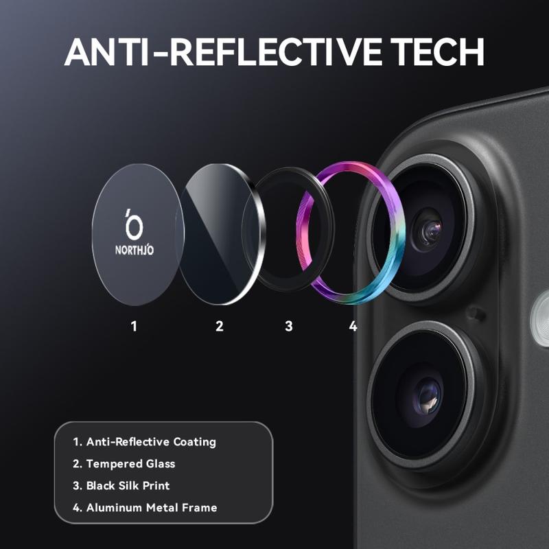 Opgrader din iPhone 17 med Northjo-kameralinsebeskytteren. Med en aluminiumsring med CD-vener giver den din iPhone 17 et elegant, moderne præg, samtidig med at den giver robust beskyttelse. Det 9H hærdede glas beskytter mod ridser, slag og støv og sikrer, at kameralinsen forbliver krystalklar. Med nem, værktøjsfri installation kan du forbedre din iPhone 17's holdbarhed og æstetik på få sekunder.