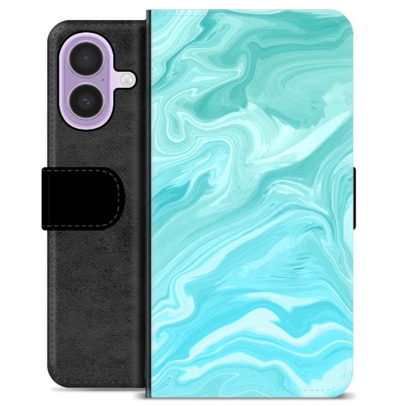 iPhone 17 Premium Flip Cover med Pung - Blå Marmor