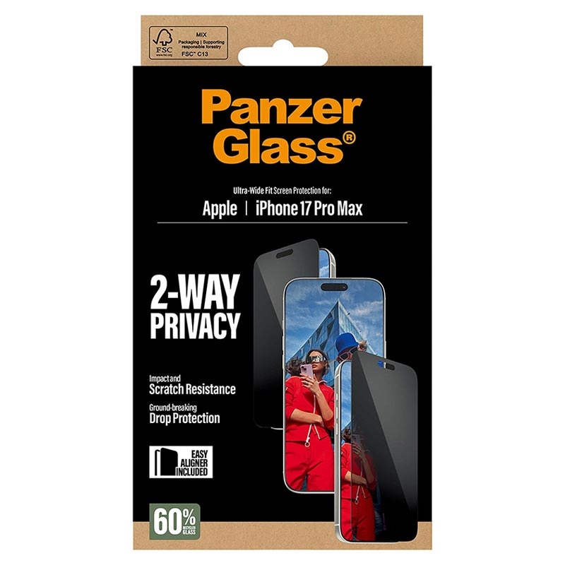 PanzerGlass Ultra-Wide Fit EasyAligner 2-Way Privacy Skærmbeskyttelse Hærdet Glas til iPhone 17 Pro Max