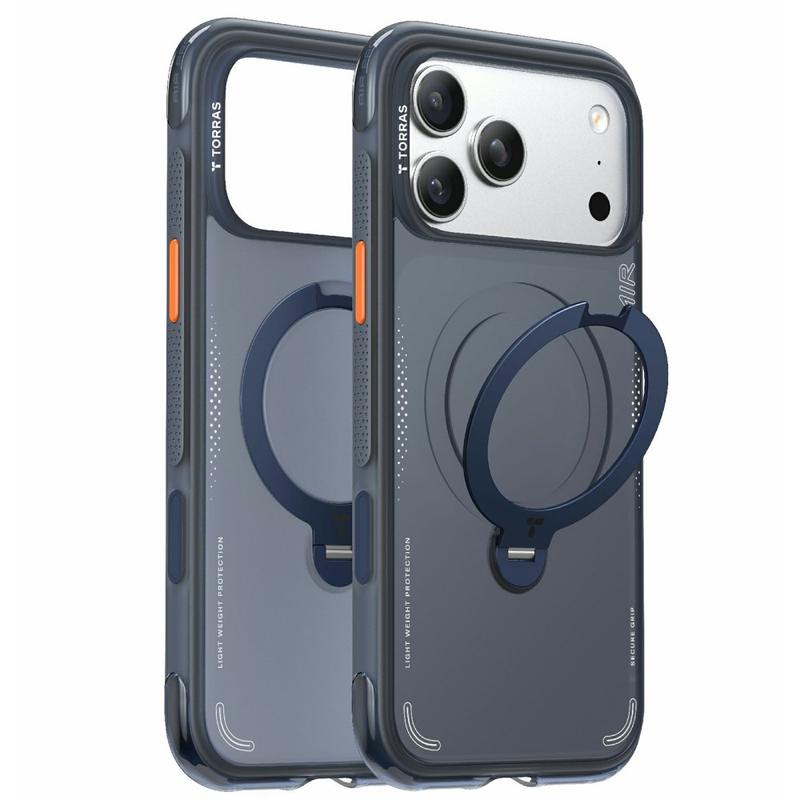 Torras Ostand Q3 Air MagSafe Case til iPhone 17 Pro Max kombinerer moderne æstetik med avanceret beskyttelse. Det er fremstillet af TPU- og PC-materialer af høj kvalitet og giver en slank, stilfuld profil, samtidig med at det giver et sikkert og behageligt greb.
