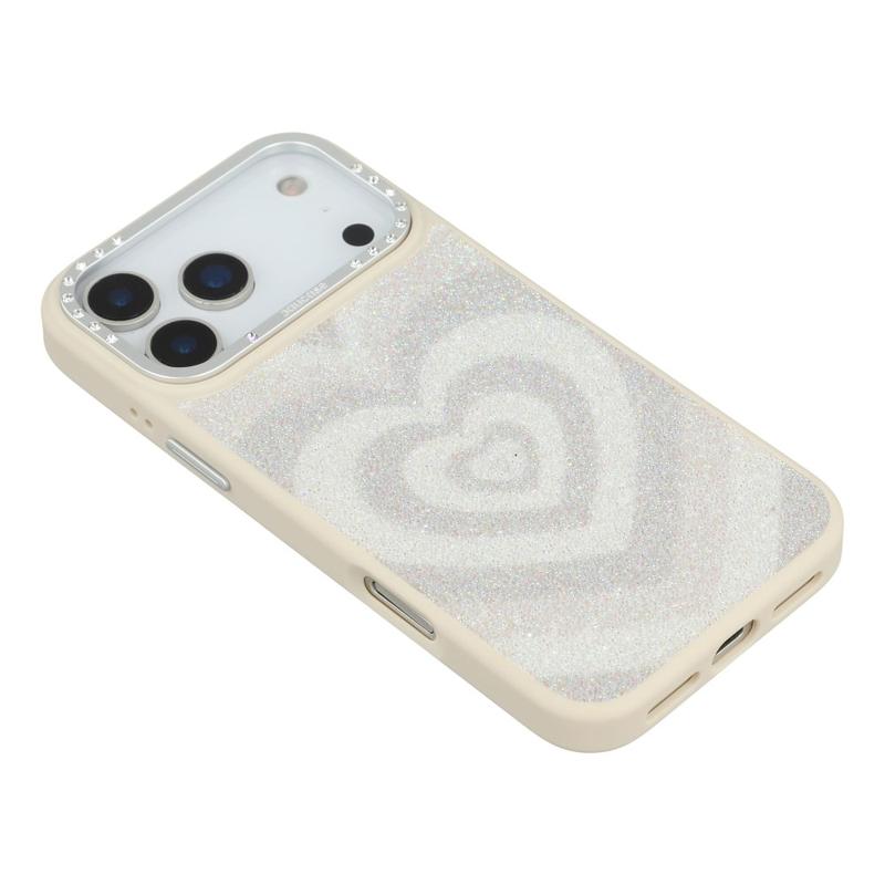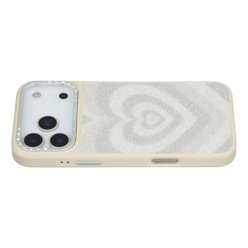 Jaucase Magnetisk hybrid-cover med hjertemønster til iPhone 17 Pro - Polyurethan + TPU + PC med ramme af rhinestone-linse