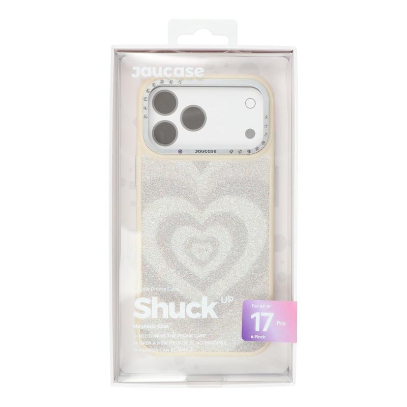 iPhone 17 Pro Jaucase magnetisk hybrid-cover med hjertemønster - hvid