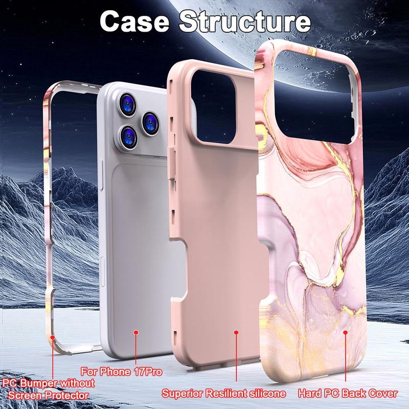 iPhone 17 Pro luksus marmor hybrid cover - Stilfuldt pc- og TPU-stødsikkert telefoncover med kamerabeskyttelse