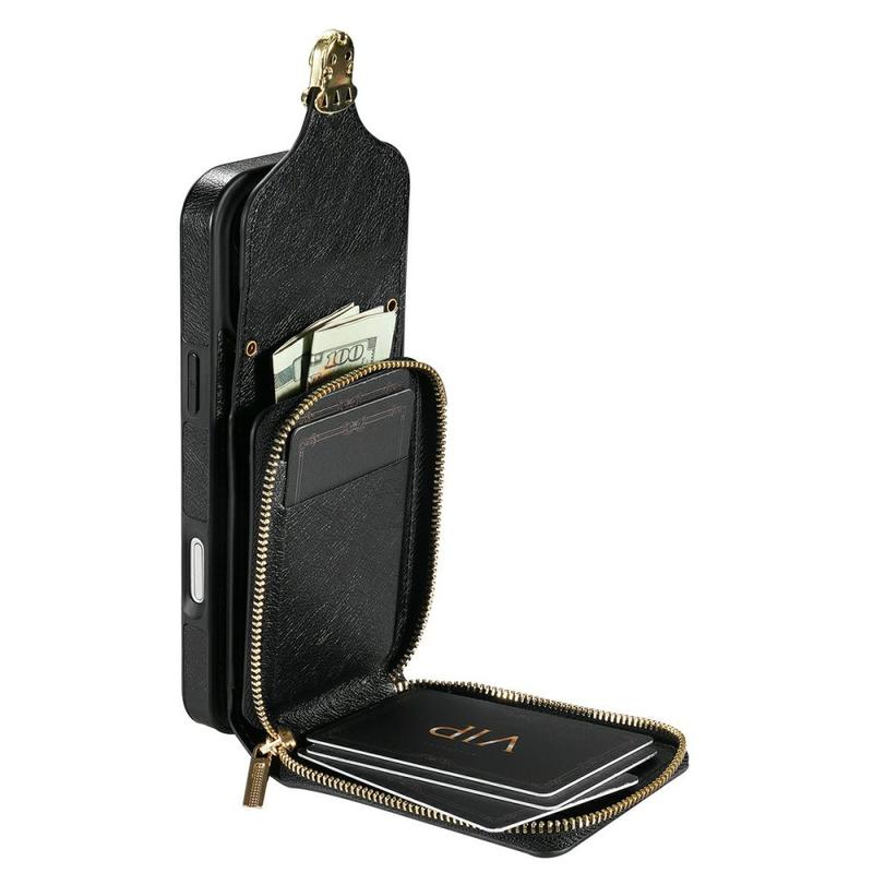 Hav din telefon, kort og kontanter i ét elegant tilbehør med dette lynlåsetui til iPhone 17 Pro Max. Det er fremstillet af slidstærkt TPU belagt med førsteklasses polyuretanlæder og giver beskyttelse i hverdagen, samtidig med at det erstatter behovet for en separat pung. Perfekt til dem, der vil have stil, bekvemmelighed og sikkerhed i ét.