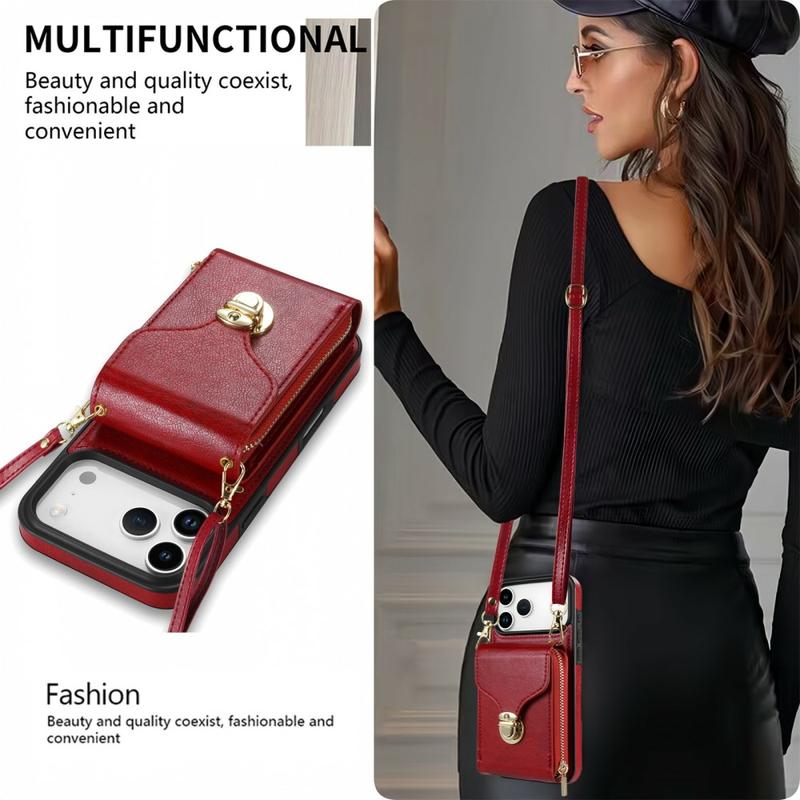 iPhone 17 Pro Max Alt-i-et cover med pung og rem - rød