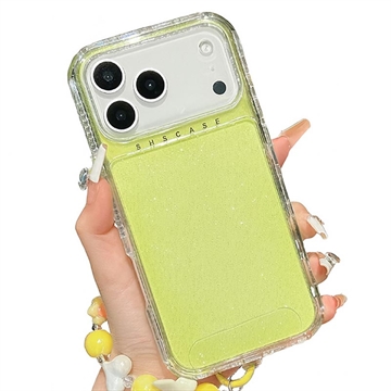 iPhone 17 Pro Max Glitter stødsikkert hybrid cover med håndledsrem - gul