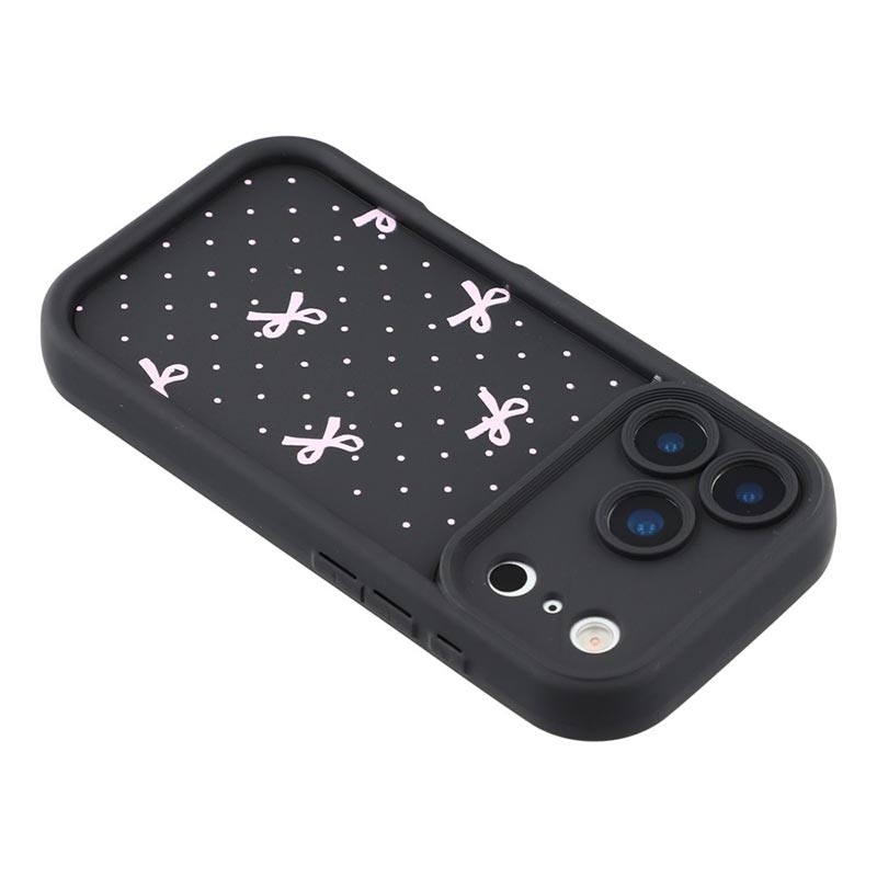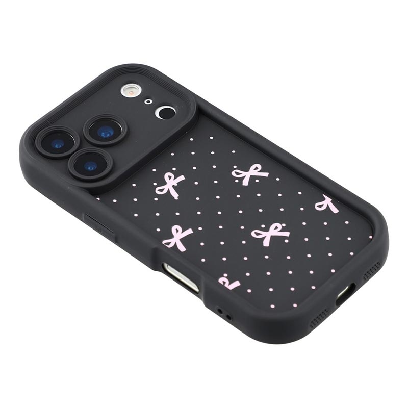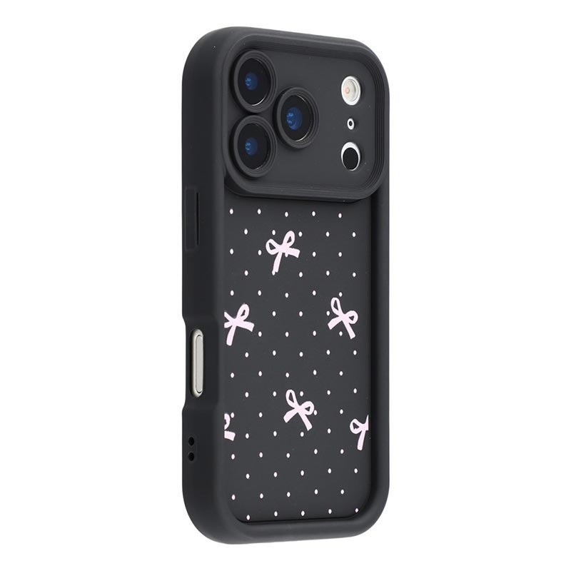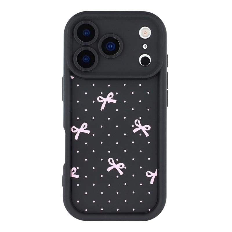 iPhone 17 Pro Max Stilfuldt stødsikkert TPU cover med forhøjede kanter - Sort / Prikket sløjfe