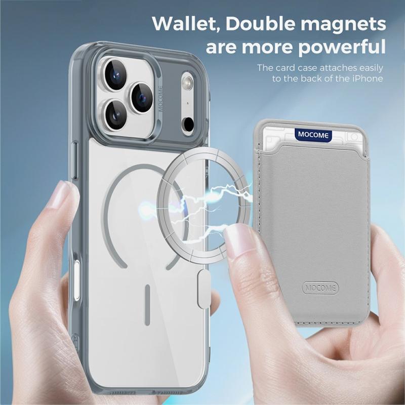 Beskyt din enhed med stil med MagSafe-etuiet til iPhone 17 Pro Max, der er designet til både holdbarhed og bekvemmelighed. Dette etui er bygget med en hybrid TPU + PC-konstruktion og kombinerer fleksibilitet med styrke for at beskytte mod fald, ridser og daglig slitage. Den integrerede magnetiske ring gør den fuldt kompatibel med MagSafe-opladning og magnetiske bilholdere, mens den aftagelige slanke kortpose med dobbeltmagnet giver dig mulighed for at bære 1-2 kort uden at tilføje masse. En krystalklar finish får din iPhone 17 Pro Max til at se elegant og original ud, mens forstærkede kanter og hævede rammer sikrer allroundbeskyttelse af din skærm og dit kamera.