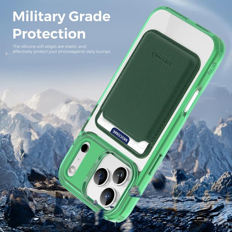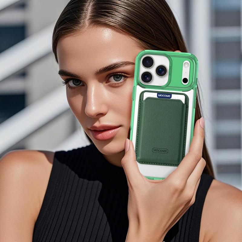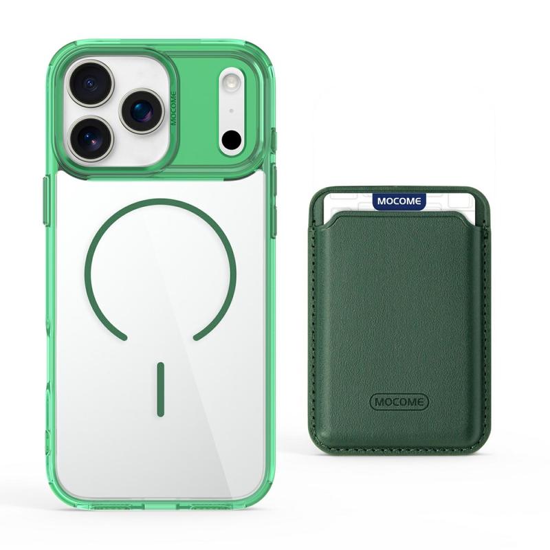 iPhone 17 Pro MagSafe Cover med kortholder - grøn / gennemsigtig