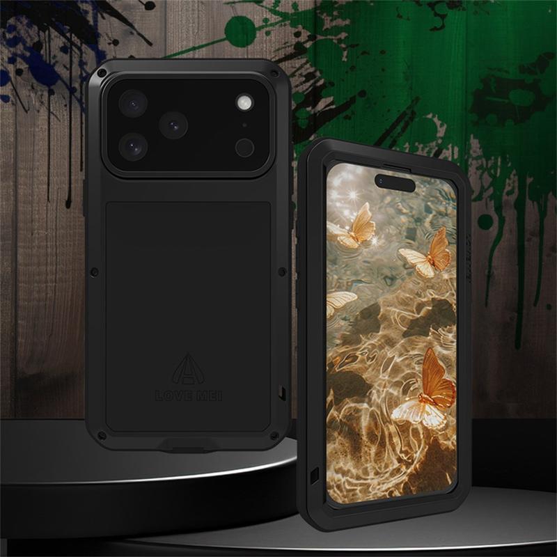 Love Mei Powerful Hybrid Cover til iPhone 17 Pro Max - kraftigt stødsikkert cover af metal og silikone