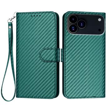 Premium pungetui med rem til iPhone 17 Pro - kulfiberstruktur
