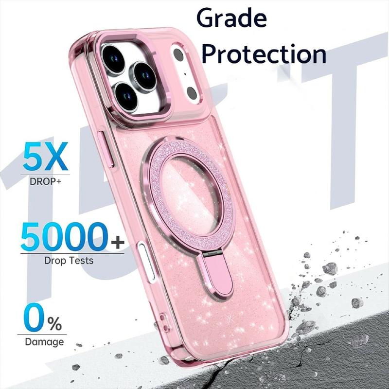 iPhone 17 Pro Glitter Hybrid Cover med Kickstand - MagSafe-kompatibel - Pink