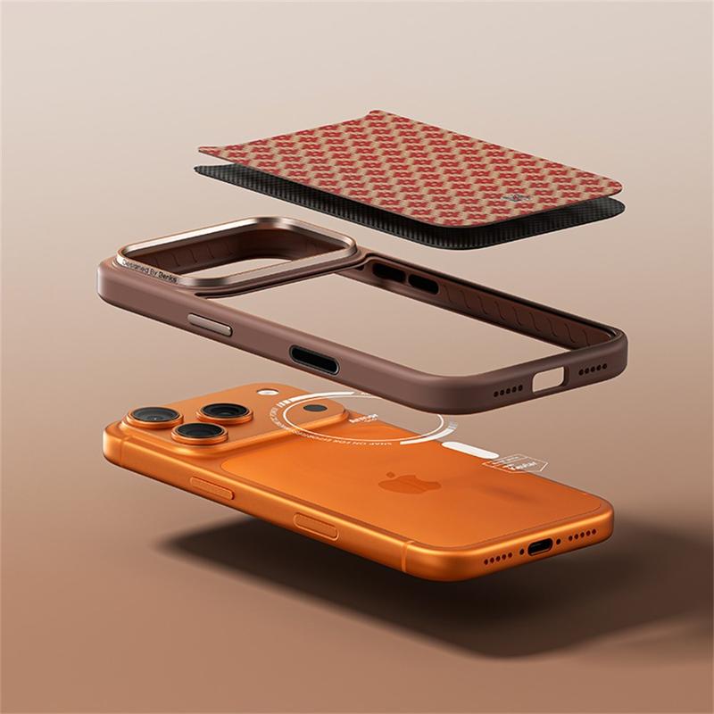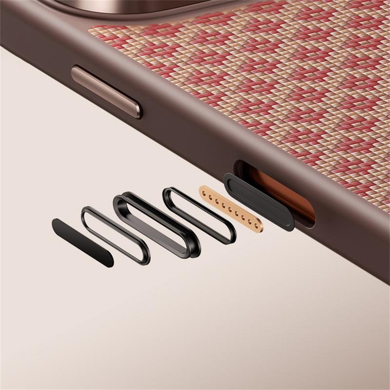 Den kunstneriske geometrisk vævede aramidfiberbagplade giver en unik taktil fornemmelse og et sofistikeret, højteknologisk udseende. Den strukturerede overflade forbedrer grebet og fremhæver materialets førsteklasses karakter, hvilket får etuiet til at skille sig ud, samtidig med at det minimalistiske design bevares.