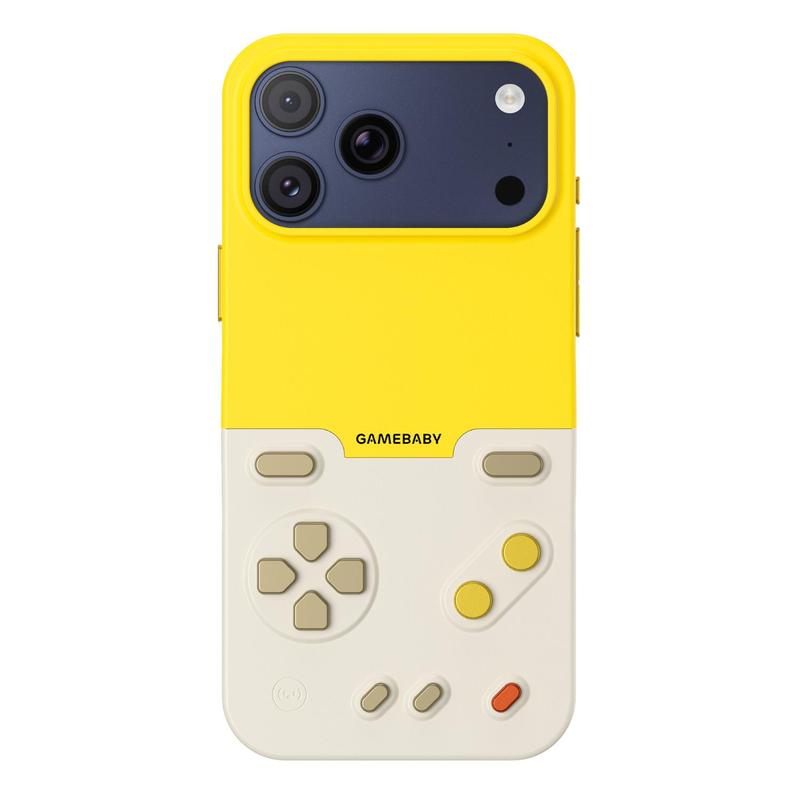 BitmoLab GameBaby Cover til iPhone 17 Pro - Etui i stil med en retro håndholdt spillekonsol med fysiske knapper, understøtter GB/GBC/GBA/NES via Delta