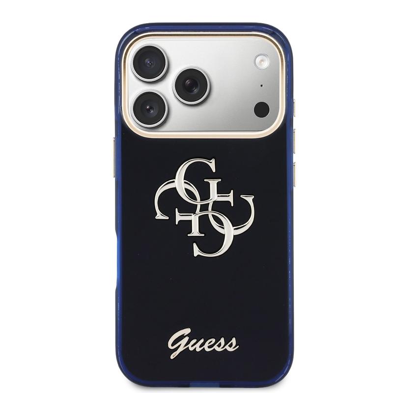 iPhone 17 Pro Max Guess IML 4G Script Metal Logo Cover - Blå